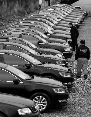 去年10月31日起,省級(jí)機(jī)關(guān)先行停駛封存擬取消公車(chē),當(dāng)時(shí)不少人關(guān)心這些公車(chē)將何去何從。昨天,江蘇省省級(jí)機(jī)關(guān)公車(chē)改革取消車(chē)輛首場(chǎng)拍賣(mài)會(huì)拍賣(mài)公告透露說(shuō),1月10日將進(jìn)行首次公開(kāi)拍賣(mài),共有75輛公車(chē)。這些車(chē)就停放在新模范馬路38號(hào)的南瑞路停車(chē)場(chǎng)。昨天下午,記者來(lái)到這里看到,江蘇省天衡拍賣(mài)有限公司工作人員正在忙著布置預(yù)展現(xiàn)場(chǎng)?!败?chē)開(kāi)進(jìn)來(lái)后,我們要卸車(chē)牌,清洗車(chē)輛?!惫ぷ魅藛T介紹說(shuō)。