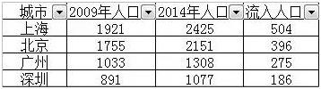 以下是最近五年北上廣深人口流入情況:
