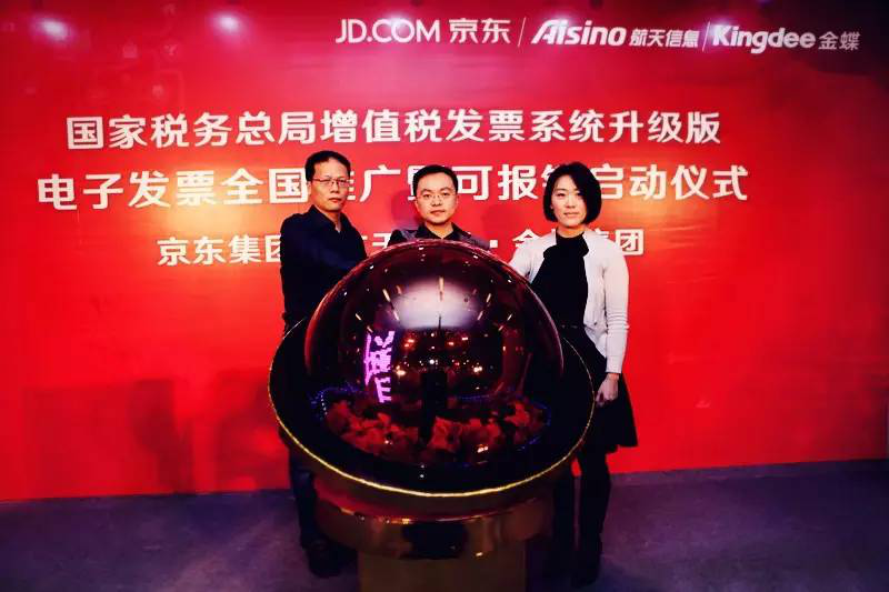 (2015年12月3日 中國北京)金蝶集團(tuán)(00268.HK)、京東集團(tuán)(JD.COM)、航天信息(600271.SH)在北京聯(lián)合舉辦“國家稅務(wù)總局增值稅發(fā)票系統(tǒng)升級版電子發(fā)票全國推廣暨可報銷啟動儀式”。此舉系三方根據(jù)稅務(wù)總局的最新文件精神,攜手落實“互聯(lián)網(wǎng)+稅務(wù)行動計劃”的重大舉措,更帶動財稅領(lǐng)域的新一輪變革。