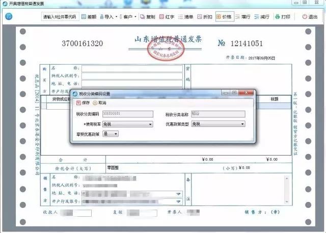 納稅人在發(fā)生上述行為,開(kāi)具增值稅普通發(fā)票,在設(shè)置商品編碼、選擇稅率時(shí),應(yīng)勾選左下角“享受優(yōu)惠政策”,選擇“是”,并進(jìn)一步選擇“不征稅”。發(fā)票開(kāi)具完畢后,展示為下圖: