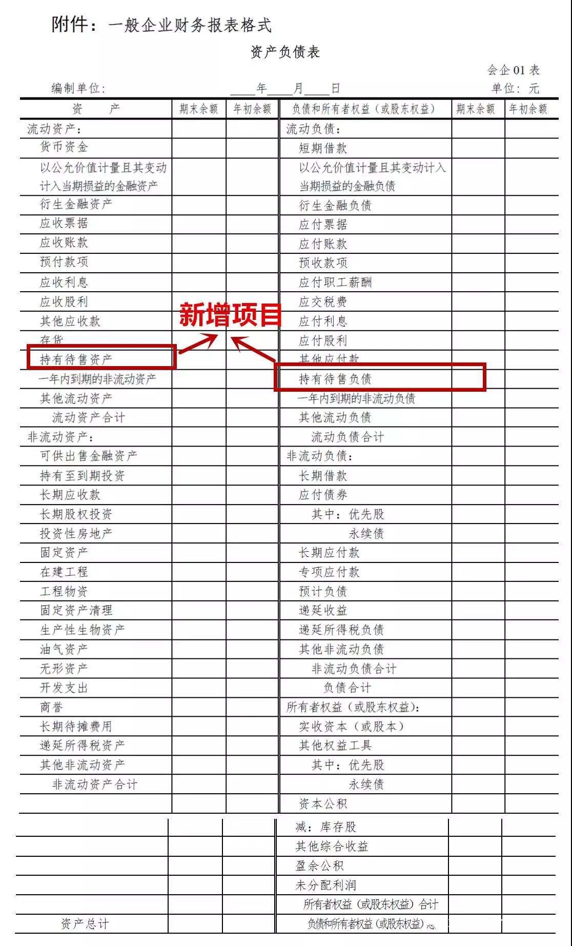 1.新增“持有待售資產(chǎn)”行項(xiàng)目,反映資產(chǎn)負(fù)債表日劃分為持有待售類別的非流動(dòng)資產(chǎn)及劃分為持有待售類別的處置組中的流動(dòng)資產(chǎn)和非流動(dòng)資產(chǎn)的期末賬面價(jià)值。該項(xiàng)目應(yīng)根據(jù)在資產(chǎn)類科目新設(shè)置的“持有待售資產(chǎn)”科目的期末余額,減去“持有待售資產(chǎn)減值準(zhǔn)備”科目的期末余額后的金額填列。