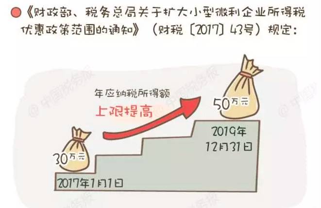 (一)自2017年1月1日至2019年12月31日,將小型微利企業(yè)的年應納稅所得額上限由30萬元提高至50萬元,對年應納稅所得額低于50萬元(含50萬元)的小型微利企業(yè),其所得減按50%計入應納稅所得額,按20%的稅率繳納企業(yè)所得稅。
